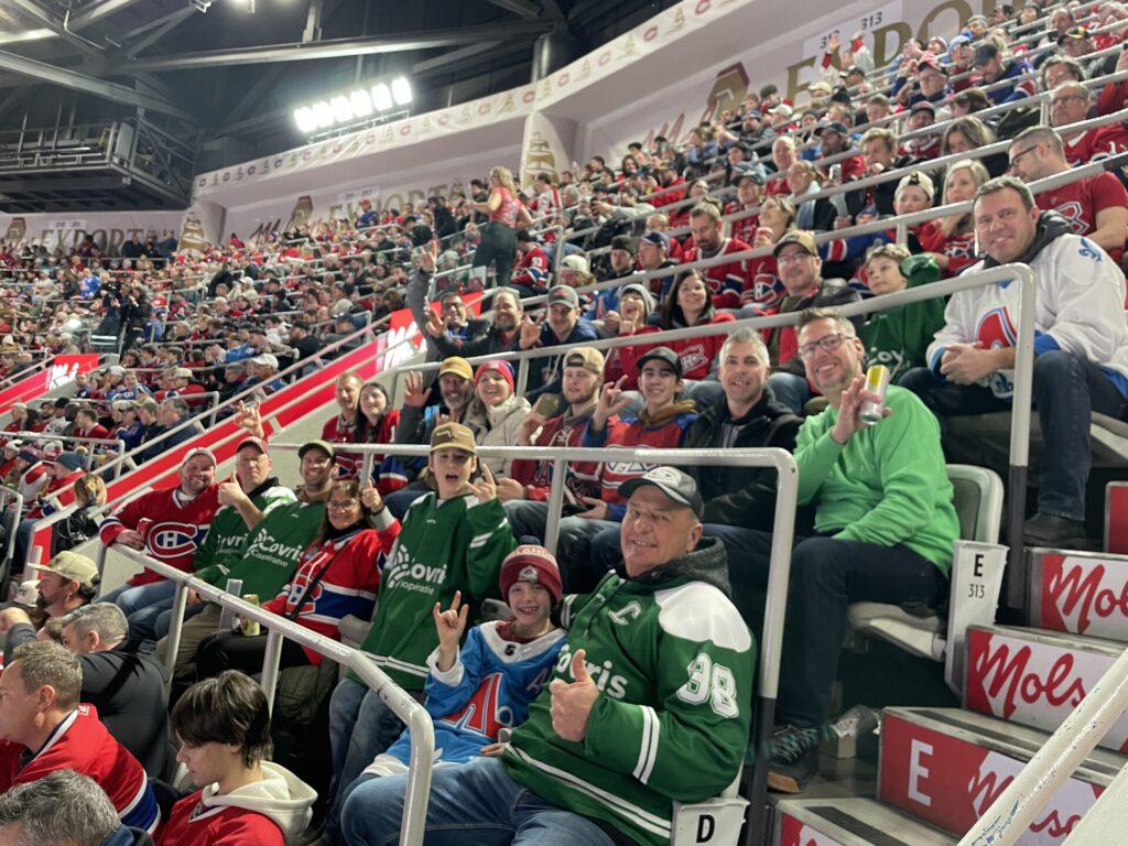 Hier soir, plus de 50 membres ont eu la chance d’assister au match du Canadien de Montréal qui affrontait l’Avalanche du Colorado, qui avait revêtu l’uniforme des Nordiques de Québec pour l’occasion. Au grand bonheur des fans du CH, la marque s’est terminée 7 à 3 pour notre Sainte-Flanelle.