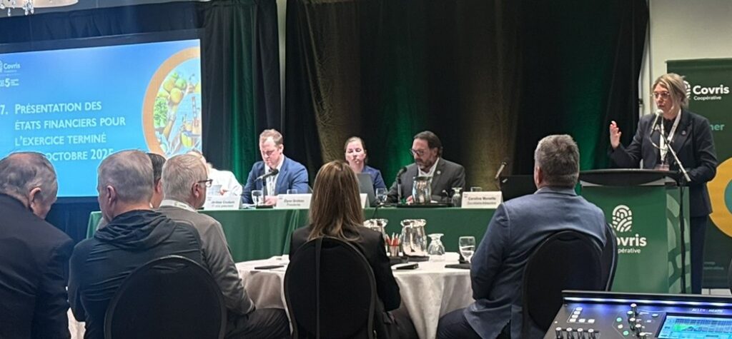 C’est le 25 mars que s’est tenue la 5e Assemblée générale annuelle des membres de Covris Coopérative pour l’année financière se terminant au 31 octobre 2025. L’événement avait lieu encore cette année à l’Auberge Godefroy, située à Bécancour. La coopérative a présenté à ses membres son rapport annuel ainsi que ses états financiers.